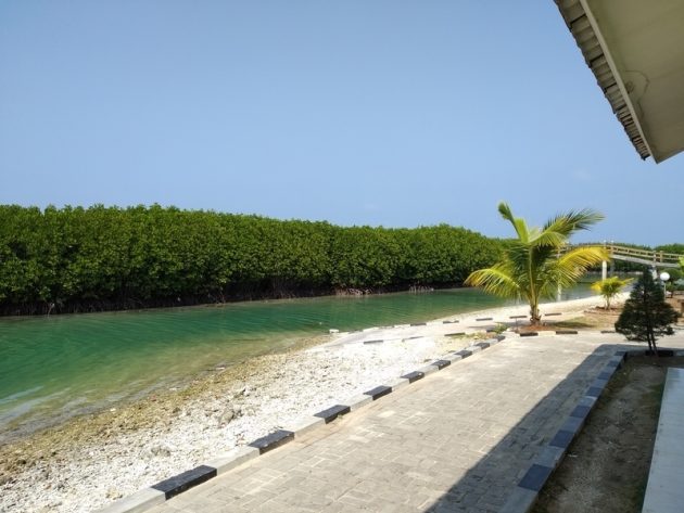 Pemandangan mangrove yang terdapat di sekitar resort menjadi salah satu keunikan di resort ini, juga tidak kalah bagusnya adalah jembatan penghubung antara pulau (resort) dengan bangunan sunset dek yang cantik dan unik yang dibangun tepat berdampingan dengan pohon-pohon mangrove yang ada di kawasan pantai.