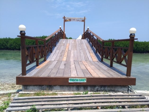 Wisatawan dapat menikmati sunset di dek jembatan Dengan konsep semi resort yang sedikit berbeda dengan pulau penduduk dan pulau resort, suasana private dapat Anda rasakan di Pulau ini.